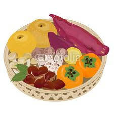 焼きいも、きのこ、栗、リンゴ、ミカン、サンマ