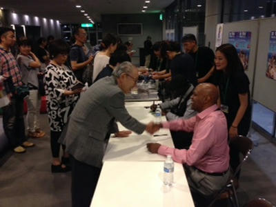 昨晩は、400名ほどの方々が来場し、有賀師のメッセージ最後に決心者の方々が前に出て祈りを受けられていました。